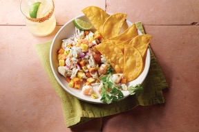 Refrigerate dish for several hours, mixing every so often so flavors continue to mix and lime juice coats proteins.